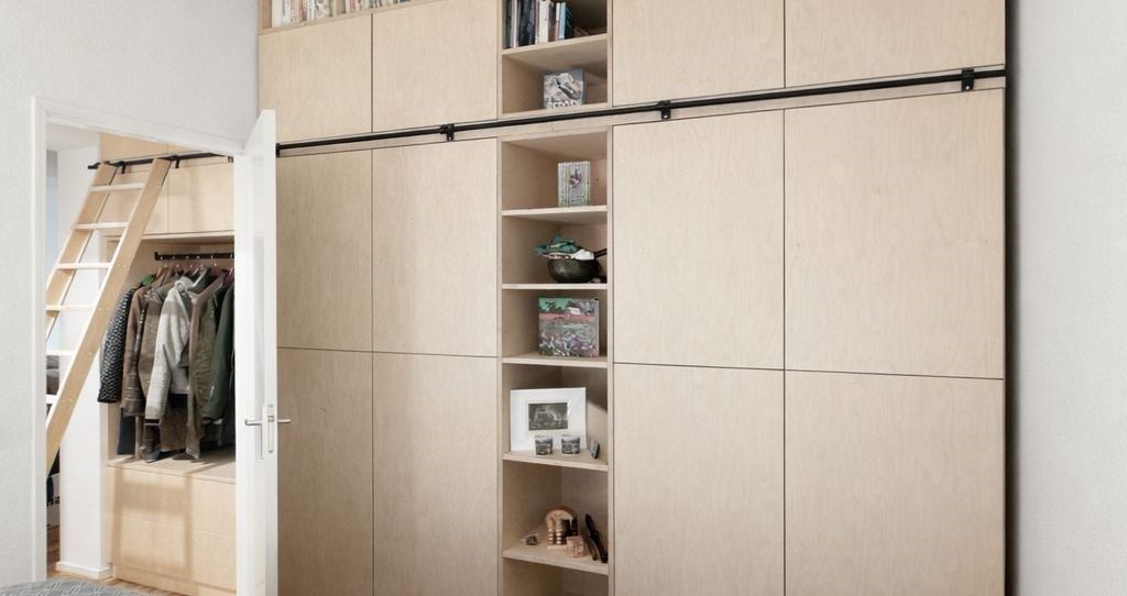 Birch plywood became the defining material throughout the project. Its subtle grain and warm tone bring softness to the robust shell of the old structure. Flush-mounted doors and carefully aligned panels emphasize clarity and proportion, allowing the natural character of the ply—especially its layered edges—to become a quiet but deliberate detail.
